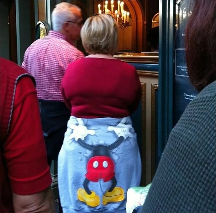 Le fait de poser sa main sur la croupe d’une personne sans que cette dernière y ait consentie est bien souvent perçu comme un geste des plus inappropriés. Mickey a pourtant choisi de monter d’un cran en matière de comportement indécent en introduisant toute sa tête dans la croupe de cette femme.